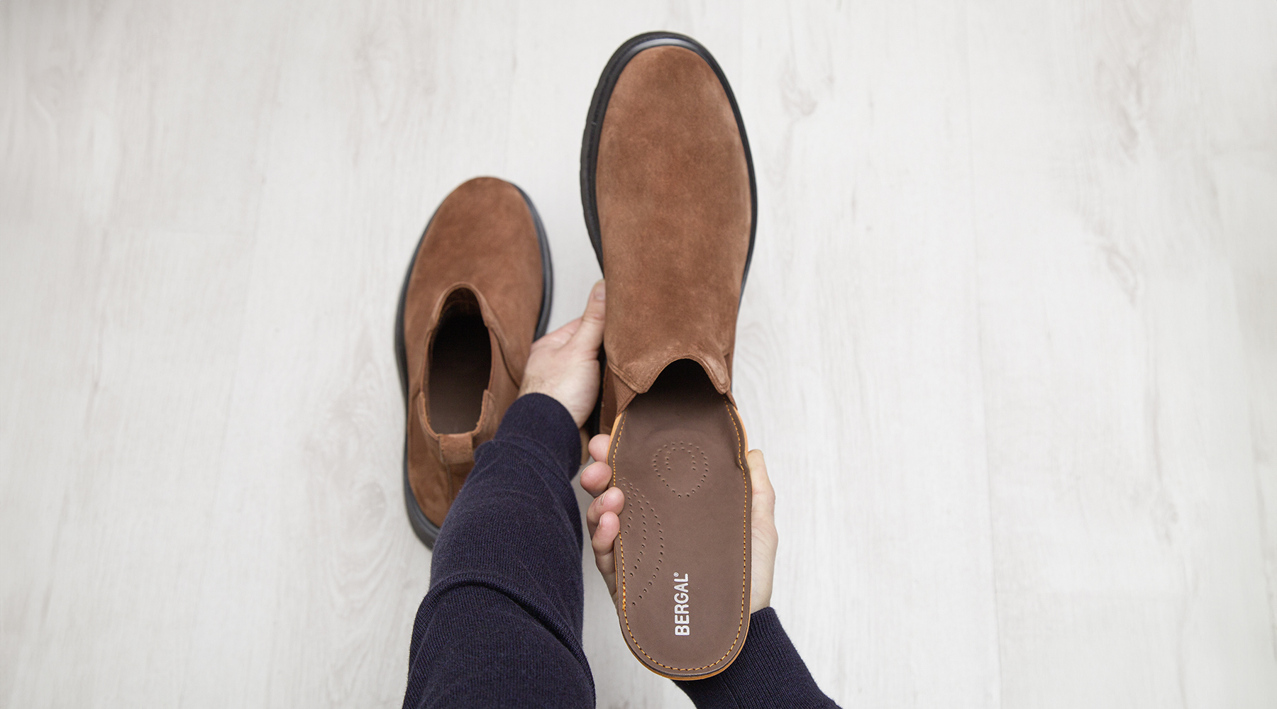 Wenn möglich, den Schuh aufschnüren/öffnen, um das Fußbett einfacherer in den Schuh zu legen. Sofern die vorhandene Sohle nicht verklebt ist, bitte entfernen. Das Fußbett mit der dunklen Leder-Oberseite nach oben in den Schuh legen und auf eine korrekte Positionierung im Fersenbereich achten. Das Fußbett sollte gut im Schuh anliegen und nicht verrutschen. Die Sohle kann nach dem Tragen zur Belüftung nach Belieben herausgenommen werden.