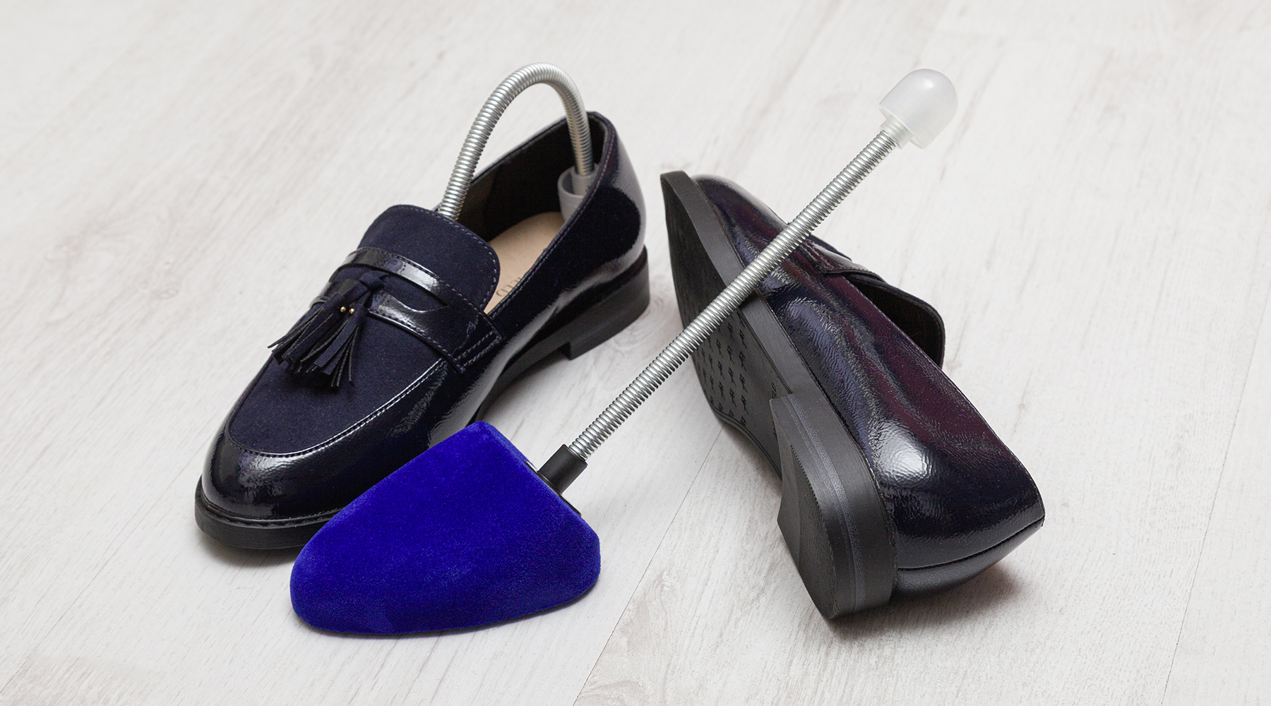 Den Schuhformer mit Spiralfeder nach dem Tragen in die Schuhe legen, um Gehfalten zu verhindern und dem Schuh überschüssige Feuchtigkeit sowie unangenehme Gerüche zu entziehen.