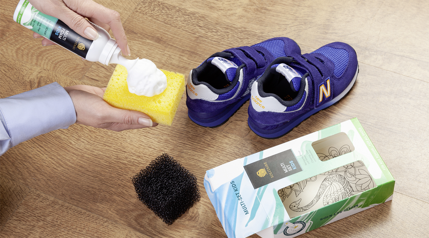 Praktisches Set für die intensive Reinigung, schonende Pflege und zuverlässige Imprägnierung von Kinderschuhen und -jacken. Der PFC-/PFAS-freie Schaum reinigt gründlich alle Materialien und pflegt gleichzeitig das Material auf schonende Weise. Außerdem wirkt er leicht imprägnierend, so dass er das Material vor Nässe schützt und Schmutz weniger schnell anhaften kann.