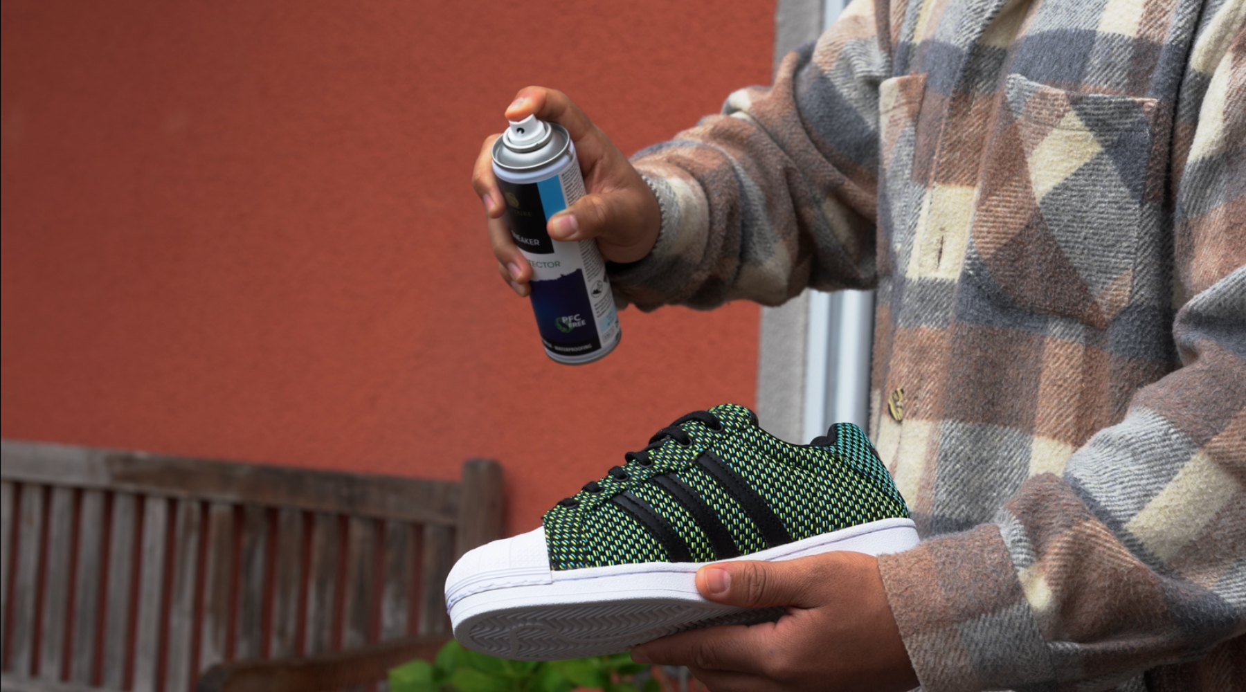 Staub und Schmutz abbürsten. Bei stark verschmutzten Schuhen sollten die Schuhe erst gut gereinigt werden, damit der Imprägnierwirkstoff einziehen kann. Sobald die Sneaker sauber und trocken sind, können sie imprägniert werden. Bitte das Spray nur draußen anwenden! Vor Gebrauch das Spray an einer unauffälligen Stelle (Innenseite Fersenbereich) auf Materialverträglichkeit testen. Aus mindestens 30 cm Entfernung gleichmäßig und dünn einsprühen. Nicht durchnässen! Gut trocknen lassen, am besten über Nacht. Für optimalen Schutz Behandlung wiederholen.