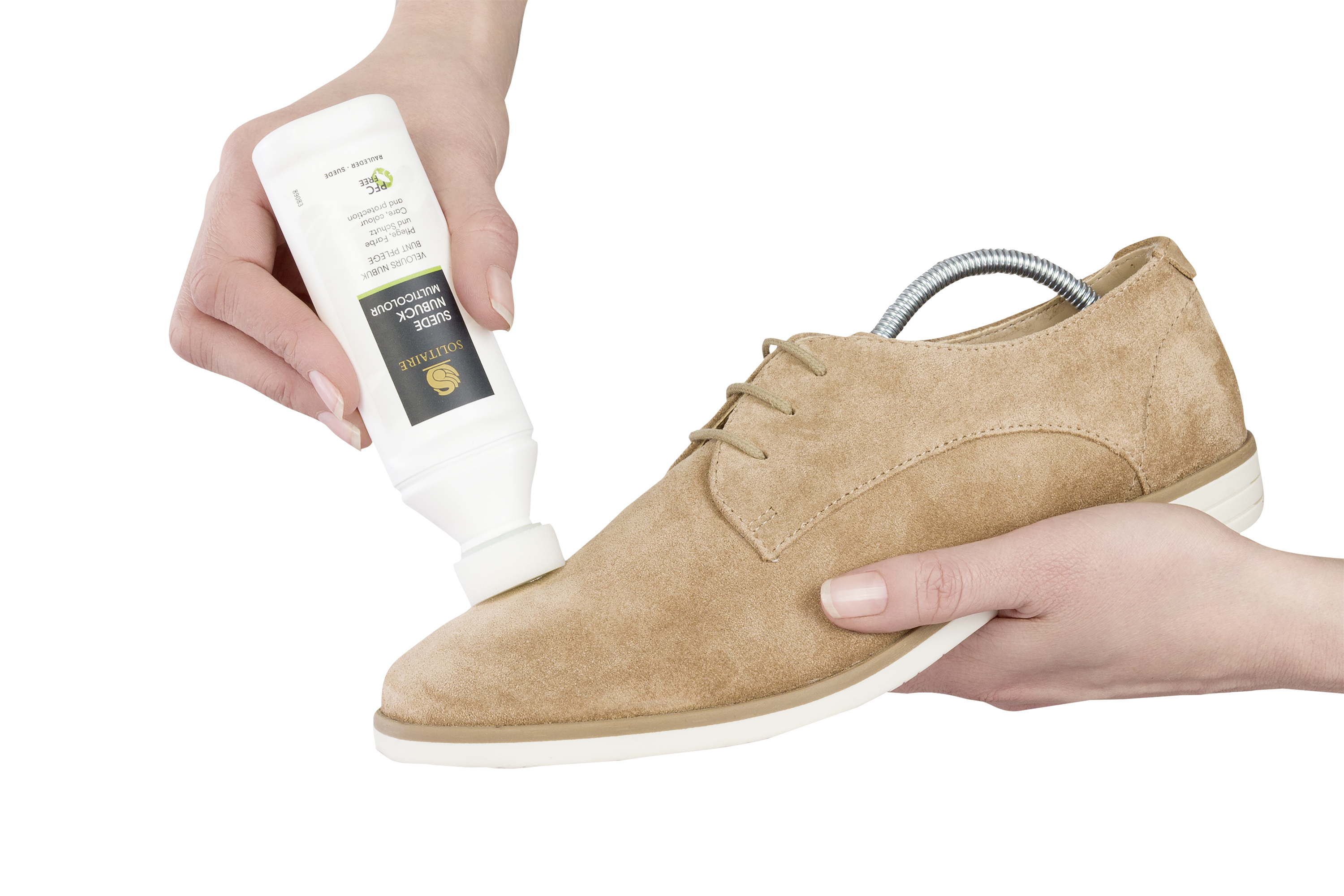 Solitaire Suede Nubuck Care ist die ideale Pflege für Rauleder. Sie pflegt, frischt die Farben auf und imprägniert ohne PFC. Die Flüssigkeit lässt sich leicht mit dem integrierten Schwammaufträger auf den Schuh auftragen und ist außerdem auch für Textilien geeignet. Das Material bleibt atmungsaktiv, und ist auch für TEX-Membranen geeignet.