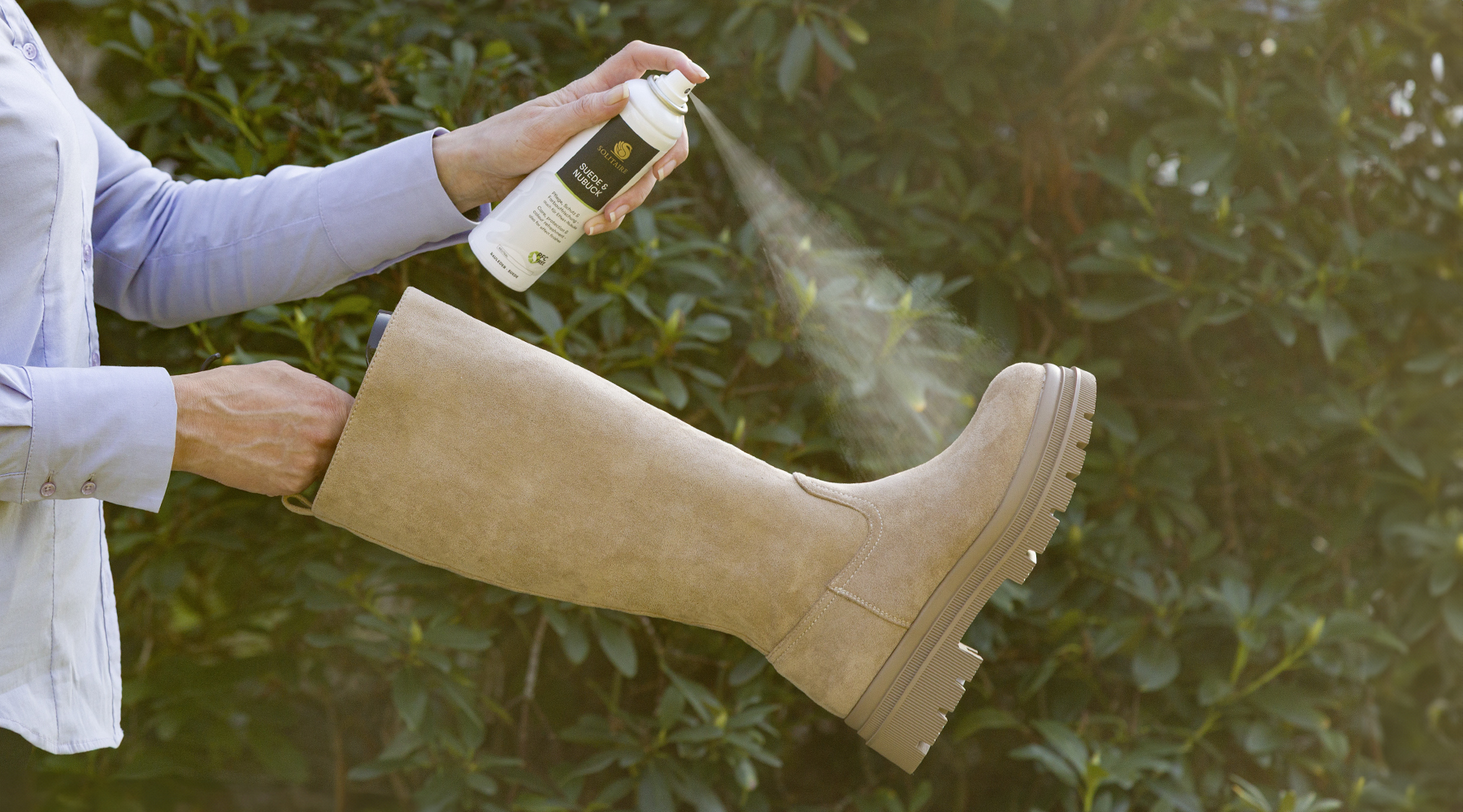 Leder- und Textilerzeugnisse nur im Freien besprühen und gut ablüften lassen!