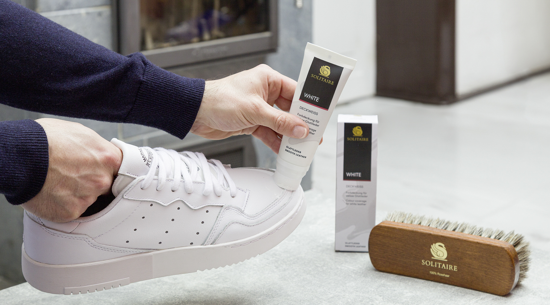 - Stark deckendes Pflegeweiß für alle weißen Glattleder